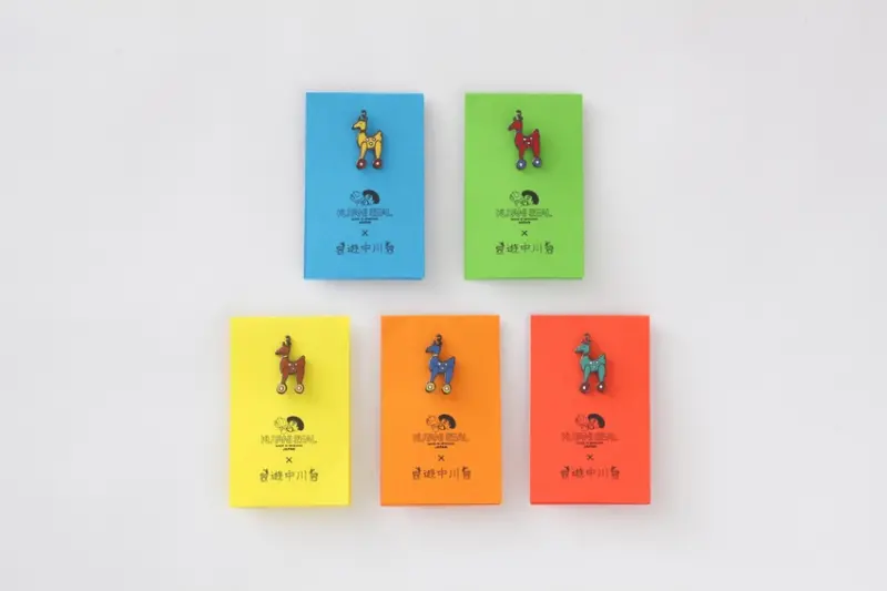 ▲聯合九谷燒品牌KUTANISEAL製成的復古玩具造型徽章,共5色。(僅供參考)