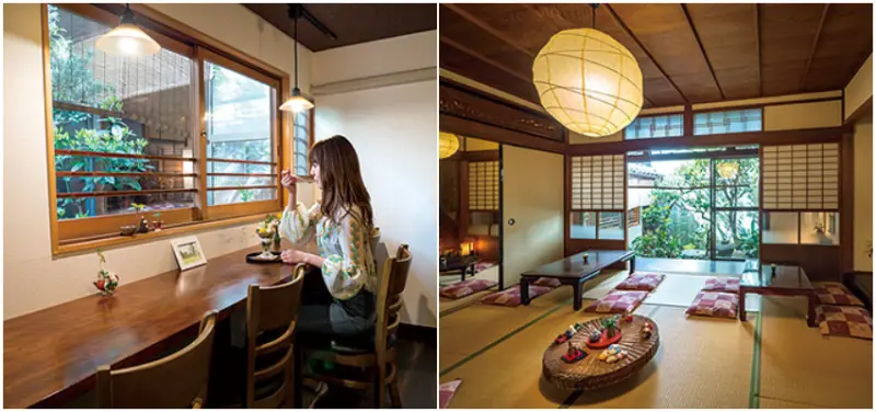 ▲以許多和風造型裝飾營造出復古氛圍的榻榻米座位區。還有能夠欣賞中庭風景的座位,即使只有一個人也能輕鬆享受。