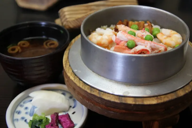 ▲釜飯放入蝦子、蟹肉、星鰻等7種食材,經過10道程序細心烹調出傳統美味。