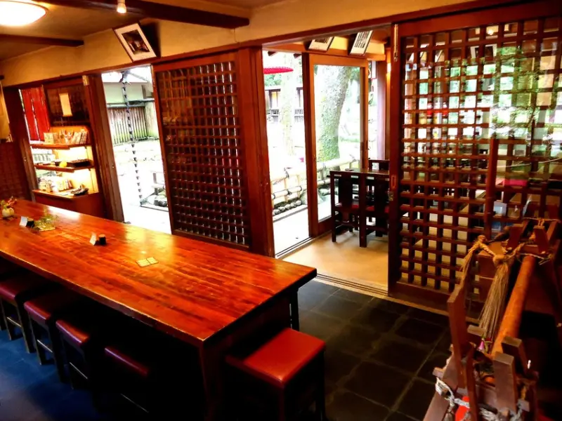 ▲坐落於萬葉植物園旁的茶屋外是清幽的日式庭園,參拜前後可在此休憩享用小點。