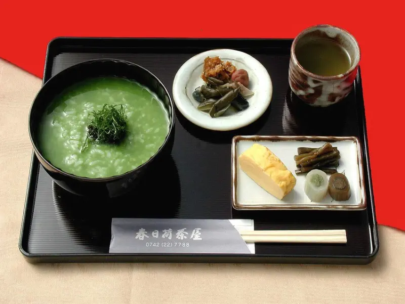 江戶時代末期創建於春日大社境內,為參拜的香客提供淨火炊煮的食物,進以淨化身心而得名的茶屋,招牌名物「萬葉粥」中,使用春日大社加持過的鹽與酒烹煮,並搭配《萬葉集》每月搭配不同野菜製成獨特風味。