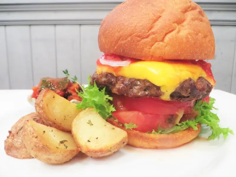 ▲午餐限定的切達起司漢堡。晚間也會提供三浦半島特產的獨家野菜料理等。