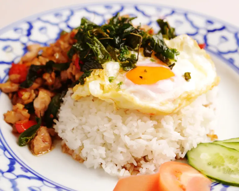 ▲除了咖啡、啤酒外,也有泰式打拋飯等餐點可以品嚐。
