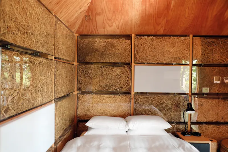 ▲早稻田大學團隊所設計的「町まとう家 A RECIPE TO LIVE」,室內外都以大量牧草作裝飾,亦可作保暖之用。。