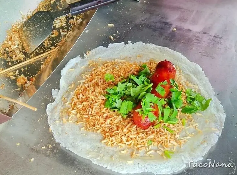 這裡的特色還有花生捲香腸,阿伯用料很大方,喜歡的記得一定要點阿!使用炭火直烤的香腸,香味就是不同!