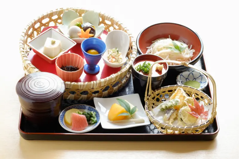 ▲初音¥2100/招牌套餐,有吉野葛麵線、天婦羅、吉野葛豆腐等各樣豐富料理。