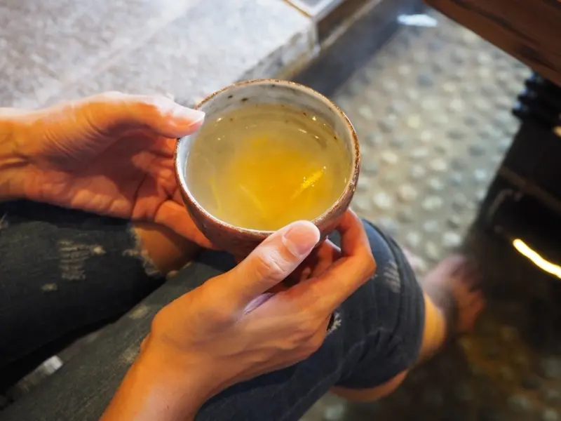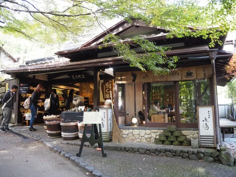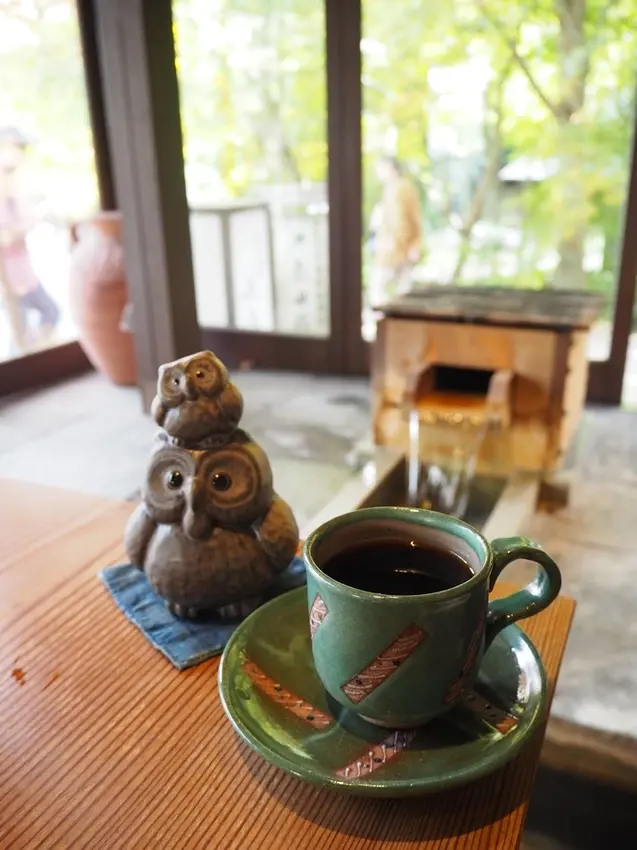 寂光院附近的溫泉地大原溫泉是京都較少人知道的私房景點,大原山莊附設咖啡廳除了獨特的足湯咖啡之外,也能體驗陶藝彩繪。小巧的足湯咖啡廳只提供飲品和少量自製甜點,點一杯飲料入座,將雙腳浸泡在暖暖的溫泉中能夠促進血液循環,好好舒緩緊繃的肌肉。