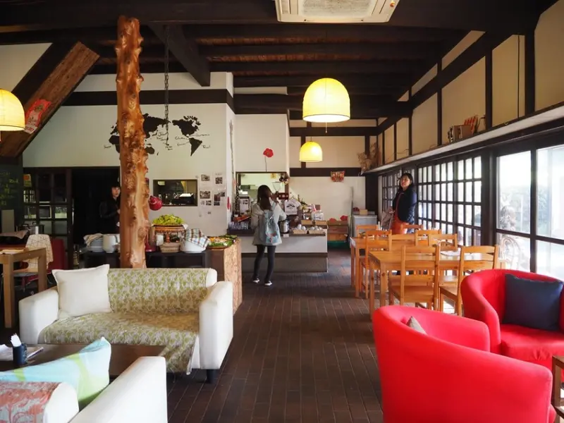 從三千院徒步可到的人氣餐廳,店內料理使用的食材皆來自10多間合作農家提供的有機蔬菜,就連咖啡都是大原當地栽種的豆子。每日更換內容的飯糰套餐或 Special Lunch午間套餐可搭配自助餐料理作為配菜享用,樸實的家常菜風格與舒適溫馨的店內布置讓人一見傾心。