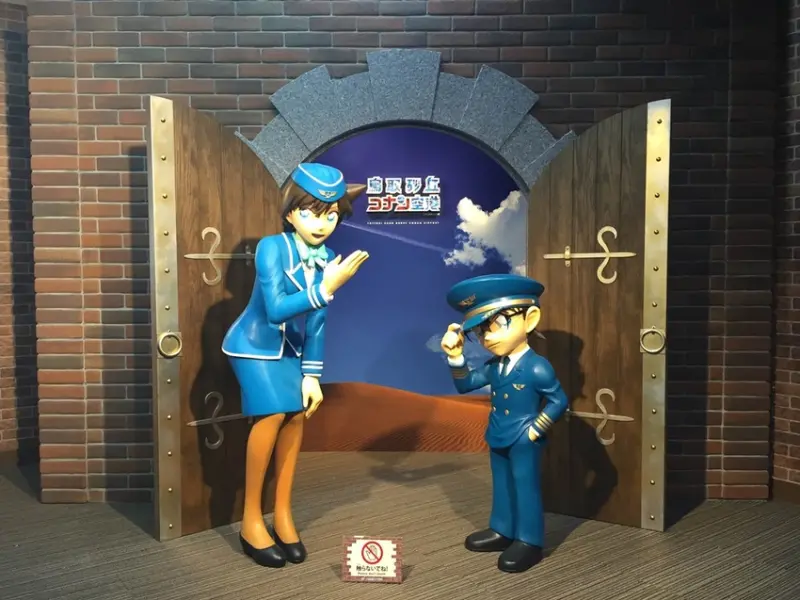 轉搭日本國內線班機前往鳥取,就可以一窺被暱稱為「柯南機場」的鳥取機場,機場內到處設有別出心裁的裝飾與畫作,並融入當地特色砂丘景觀,成為拍攝紀念照的熱門景點。