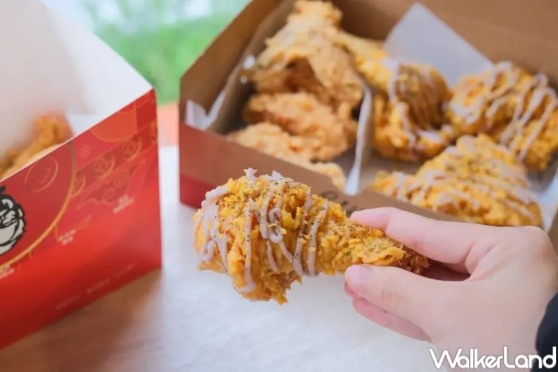 肯德基新品大甲芋泥鹹蛋黃炸雞!搭上農曆春節話題,肯德基這次推出新品「紫芋金來金沙雞」,用金沙醬搭配大甲芋泥,挑戰炸雞控的新歡。同時肯德基更推出只送不賣「招財金雞桶」新春限定小物,讓粉絲們準時朝聖吃起來。