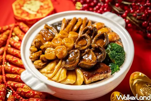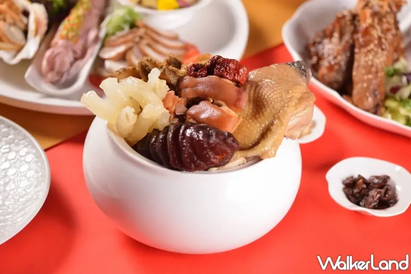▲象徵福壽雙全的「淮揚珍饈聚寶盆」,選用鮑魚、干貝、花膠等珍饈食材,搭配金華火腿熬煮的濃郁湯底 / 林口亞昕福朋喜來登提供、WalkerLand窩客島整理