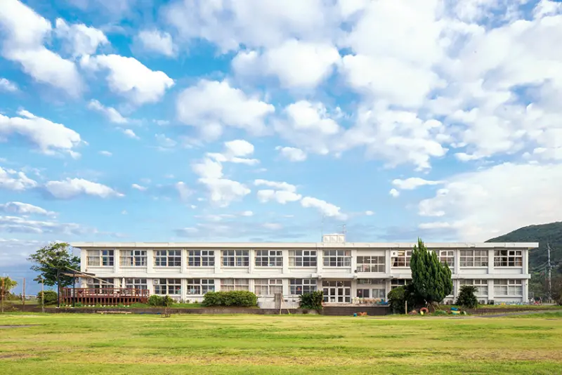 鄰近海邊的複合式住宿設施「YUKUSA OHSUMI 海的學校」,前身是6年前廢校的「鹿屋市立菅原小學」,重新翻修改裝後成為嶄新的體驗型旅宿。建築外觀保留學校原本的風貌,內部則將既有的校長室、教職員室和部分教室改造成客房,提供一般雙人房及多人房、大通鋪等房型;理科教室改為食堂、音樂教室則是DIY體驗工坊,並在戶外新建樹屋,讓來客充分貼近自然。