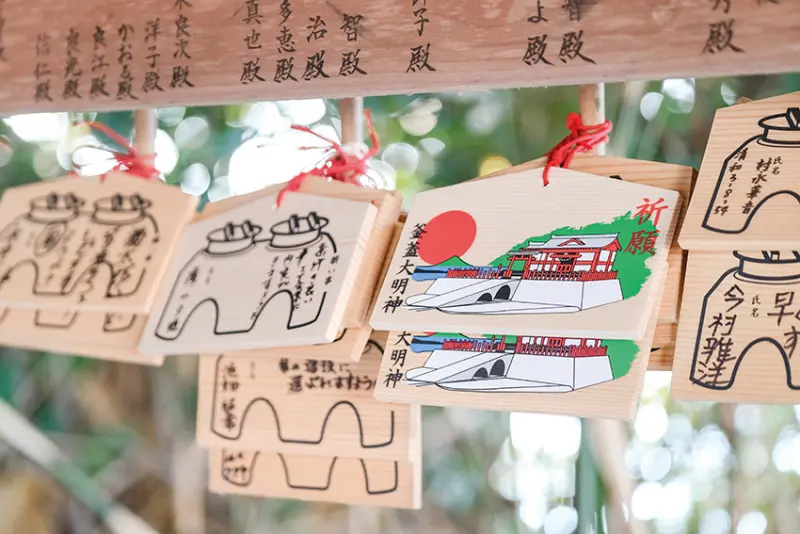 ▲繪馬一面為神社外觀,另一面為釜鍋的圖案。