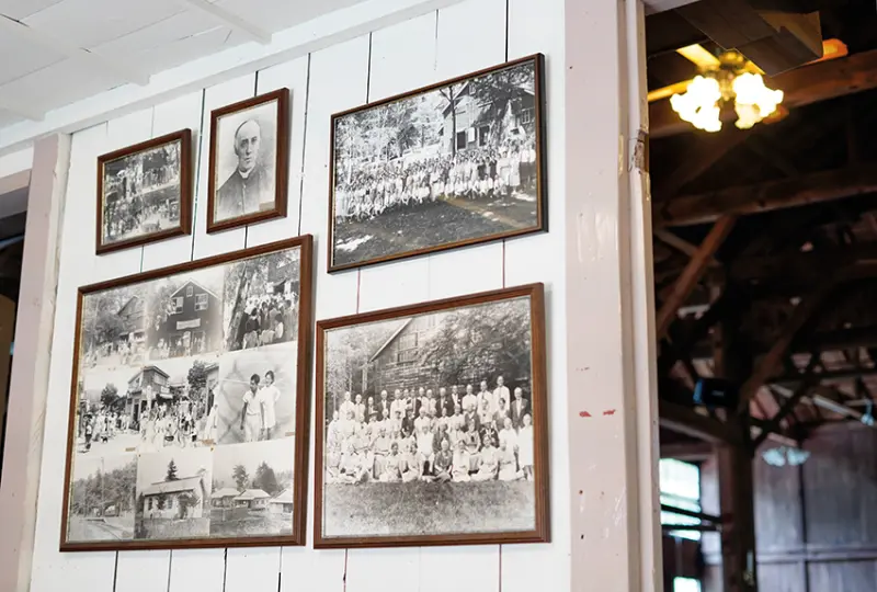 ▲教堂內掛滿了具歷史價值的照片,當中包括日上皇明仁和上皇后美智子在網球場上的合照。