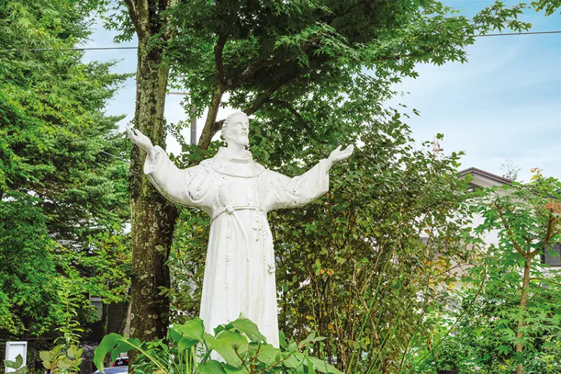 ▲在教堂外佇立了聖方濟各的石像。