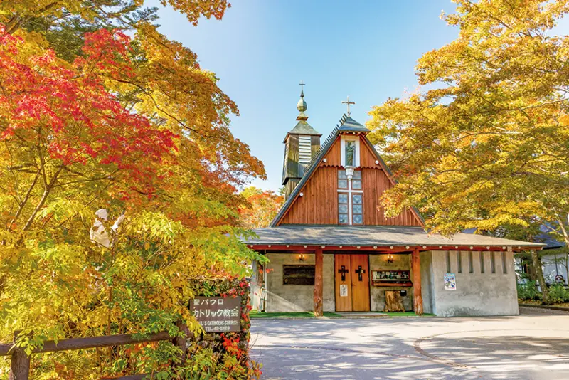 要說浪漫的象徵,輕井澤的教堂當之無愧,就連當地居民也喜愛在這些教堂內舉行婚禮,而舊輕井澤內就能找到眾多代表性的教堂,聖保羅天主教教堂就是其中之一。建於1935年,由英國神父Ward設立,著名建築師Antonin Raymond所建造,以木材及水泥混搭而成,榮獲美國建築學會獎。教堂擁有巨大的木造等邊三角形屋頂,內部以原木為主材料,滿載傳統的古典美學,隨季節變化散發出不同浪漫氣氛。