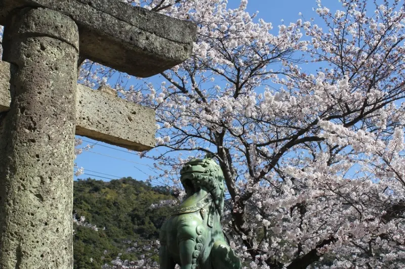 獨特的陶瓷鳥居下仰望粉櫻「陶山神社」