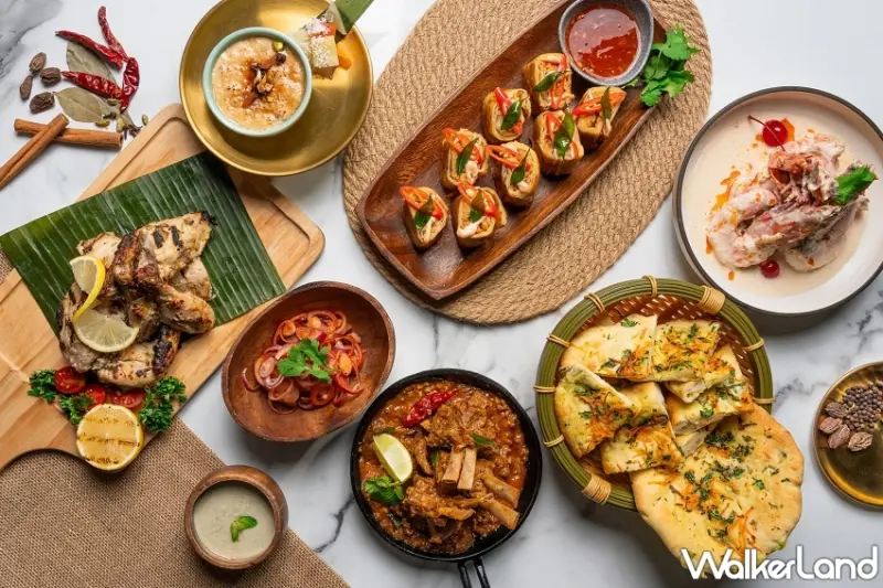▲這一次蓮花餐廳的菜單調整,涵蓋了坦都里雞、仁當牛肉、馬來咖哩蝦、紅腰豆瑪沙拉以及甜點煎蕊等經典南洋料理 / 板橋凱撒大飯店提供、WalkerLand窩客島整理