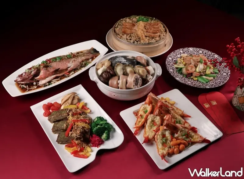 ▲外帶年菜「金蛇吐祥組合」適合六人共享 / 台中日月千禧提供、WalkerLand窩客島整理