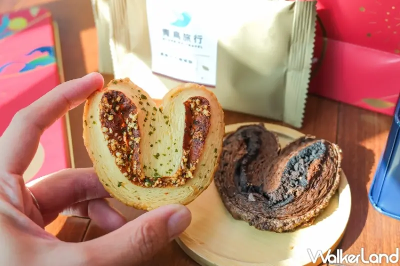 這次青鳥旅行特別針對春節禮盒,推出新品「咖啡歐蕾蛋捲」與「夾餡蝴蝶酥」,在本次春節禮盒內可以吃得到。新口味「咖啡歐蕾蛋」捲融合哥倫比亞中深焙咖啡顆粒與奶香,打造豐富層次,最適合下午茶開吃。另一款「夾餡蝴蝶酥」則有苦甜的「濃醇可可」口味、以及鹹香解膩的「香蒜起司」口味,一盒裡面通通吃得到。