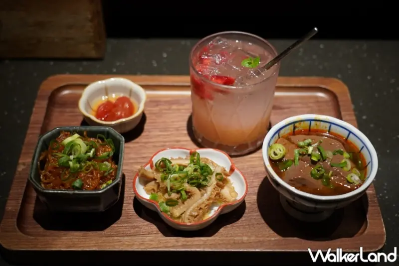 ▲每日下午三點至五點為門前隱味台中店Happy Hour,任點一杯飲料即贈三款小菜/WalkerLand窩客島 楊婷雅 拍攝