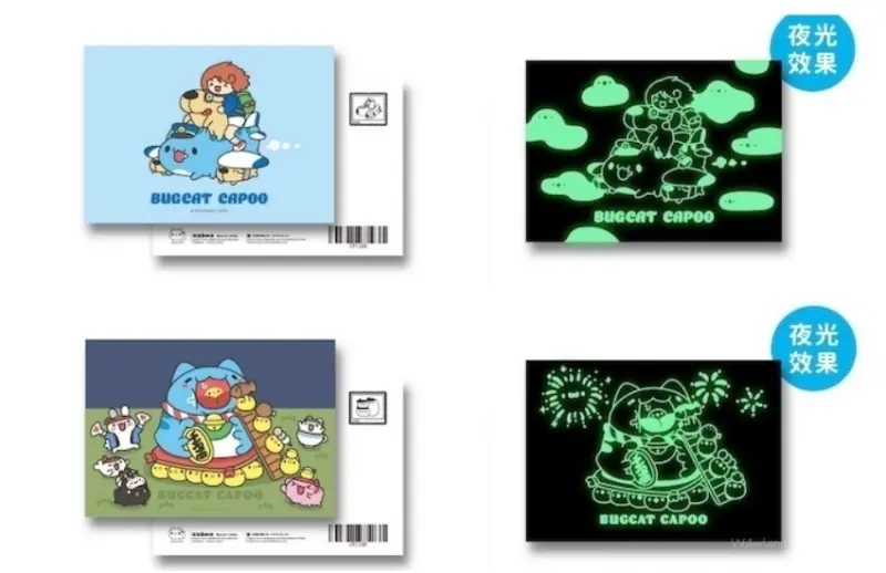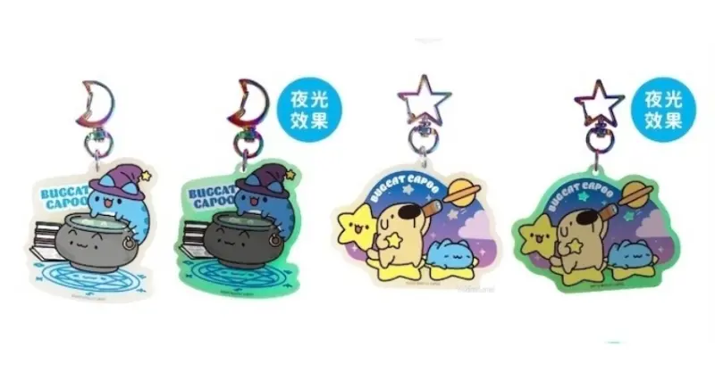 南投燈會首次攜手貓貓蟲咖波,在燈會打造超夢幻「貓貓蟲咖波閃耀快閃店」,並且呼應燈會主題,推出新品夜光系列周邊小物。粉絲要先搶「夜光鑰匙圈」,推出狗狗觀星與魔法師兩款設計,還有「閃閃發光貼紙包」五入組,以及「夜光明信片」等,部分圖案只在燈會現場限定販售,通通具備夜光效果,無論鑰匙圈、貼紙、明信片,在夜裡都能閃閃發光,更增添視覺效果。