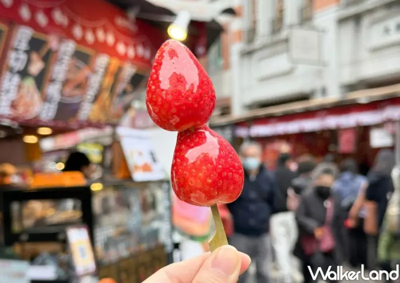 ▲▼台北大稻埕年貨大街推薦必吃草莓糖葫蘆、小黃瓜糖葫蘆 / WalkerLand窩客島 鄭雅之 拍攝