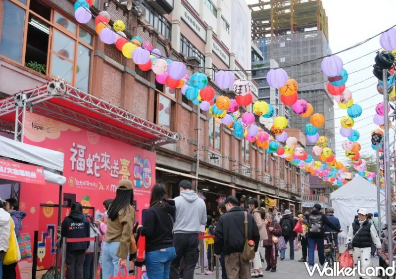 同時,為了增添濃厚的過年氛圍,邀請到藝術家吳騏創作「走春三十」,以迪化街特色為靈感打造五組特色守護神,有巨偶、糕餅花、月下談心與布花蛇等,從南京西路、永樂廣場儀亂都能看到特色燈區,就等你來拍下蛇年第一張美照。