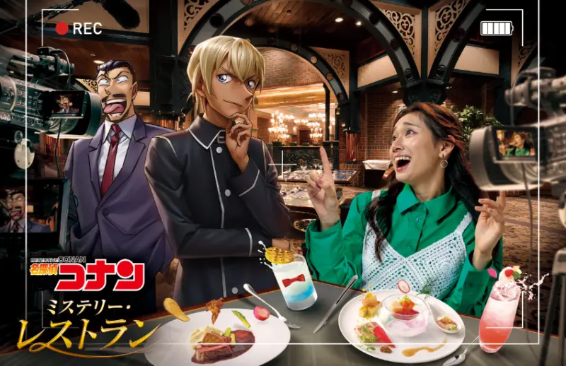 《名偵探柯南 推理餐廳》則在Lombard's Landing餐廳舉行。遊客將在用餐時親自參與小五郎、安室透追查寶石盜竊案的過程。活動從2025年1月31日持續到6月1日,每場表演約80分鐘。成人票價7,000日圓,兒童票價2,600日圓。餐廳提供法式套餐,還有特製飲料與杯墊組合,每杯1,300日圓。![]()