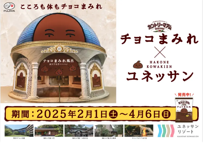 被譽為關東人後花園的箱根,自古便是日本文人雅士嚮往的度假勝地。這裡不僅擁有四季如畫的絕美景致,更以優質溫泉聞名遐邇。其中,位於箱根的「箱根小涌園 Yunessun」溫泉主題樂園,除了能讓遊客盡情享受暖湯洗滌身心的愜意,更設有多項特色遊樂設施,為傳統溫泉體驗注入新意。2025年初春,箱根小涌園 Yunessun特別攜手日本百年品牌不二家,推出「Country Ma'am 巧克力泡湯」限定企劃,邀請旅人沉浸在香醇巧克力溫泉中,體驗一場前所未有的甜蜜享受!![]()