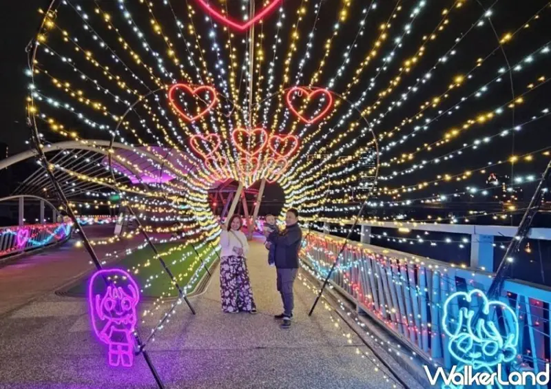 ▲▼辰光橋情人節光雕展於1/25~3/23期間免費點燈 / 新北高灘處 提供、WalkerLand窩客島整理