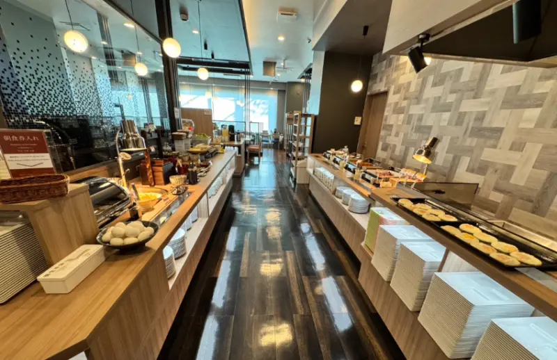 餐廳NAGOMI也供應房客限定的免費早餐,每天早上6點半開始營業到9點,有73個座位。餐點包含現烤麵包和主廚現場料理的蛋料理。沒有訂房的話,成人收費1,500日圓,國小學童750日圓。如果追求CP值的話,選這家就對了!