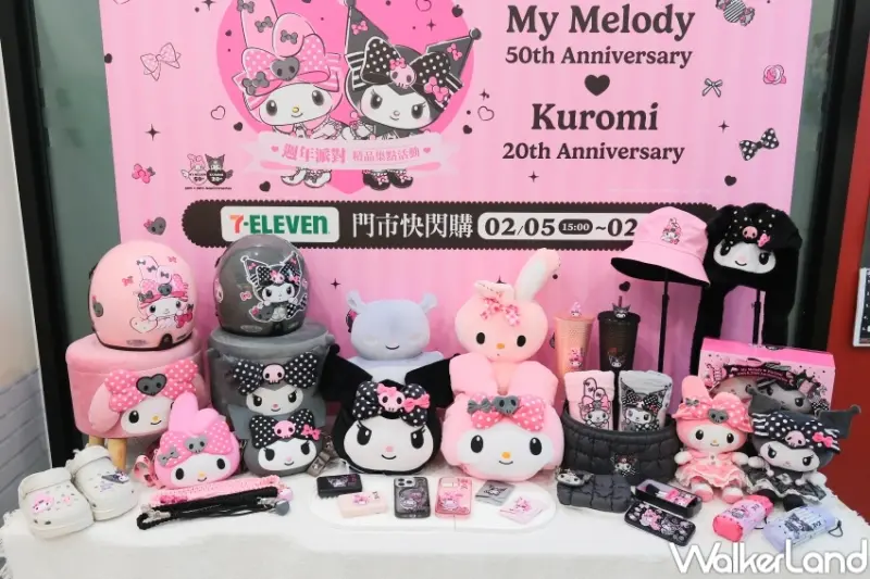 美樂蒂、酷洛米粉絲要嗨了!這次7-ELEVEN預告將在2/5過年後開工日,推出全新「MY MELODY 50th X KUROMI 20th週年派對」加價購活動,同時慶祝美樂蒂50週年、酷洛米20週年,這對超萌三麗鷗閨蜜攜手推出超過20款少女系小物,實用的居家週邊、3C小物,或是超有收藏價值的紀念玩偶,最低199元就能入手。