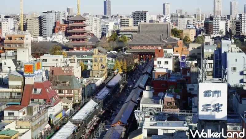 ▲在淺草寺文化觀光中心的展望台可以飽覽淺草寺和淺草仲見世通/ WalkerLand窩客島 楊婷雅 拍攝