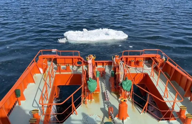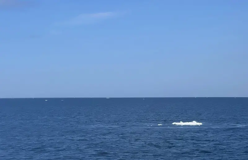 隨著船隻深入流冰區域,船長特意尋找了一片尚存流冰的區域,迎風駛去。遠望時,冰塊顯得並不大,但當船隻靠近,才能真切感受到這些流冰的巨大規模,就像電影《鐵達尼號》中所描述的,海面上的只是冰山的一角,而水面下隱藏的冰層更加龐大。