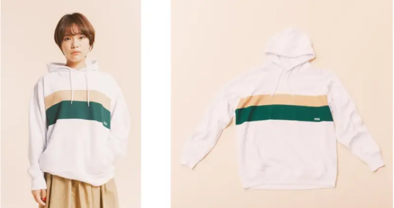 商品共有三款,分別以「T恤+襪子」、「帽T+襪子」的組合方式販售。綠色款式採用350型電車配色。這是廣島電鐵自行開發的車型。純白底的簡潔設計很好搭配,不管是搭白褲、黑褲還是牛仔褲,都很清爽。如果是女生,搭配網球裙、中筒襪,更顯青春開朗。![]()