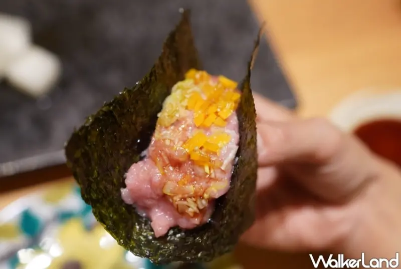▲高雄日航酒店飛翔餐廳蔥鮪魚泥/ WalkerLand窩客島 楊婷雅 拍攝