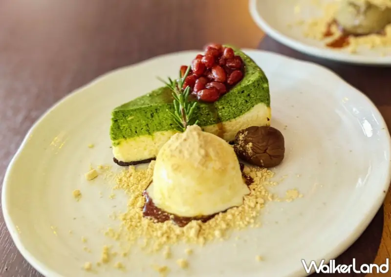 抹茶起司蛋糕使用廣島老字號茶舖春華園的抹茶,搭配紅豆增添和風風味