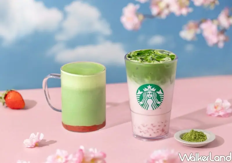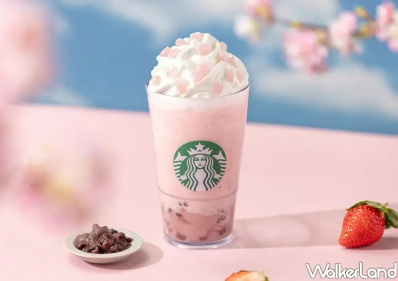 ▲▼星巴克「櫻花風味草莓抹茶那堤」加了Q彈麻糬丁/ 星巴克 提供、WalkerLand窩客島整理