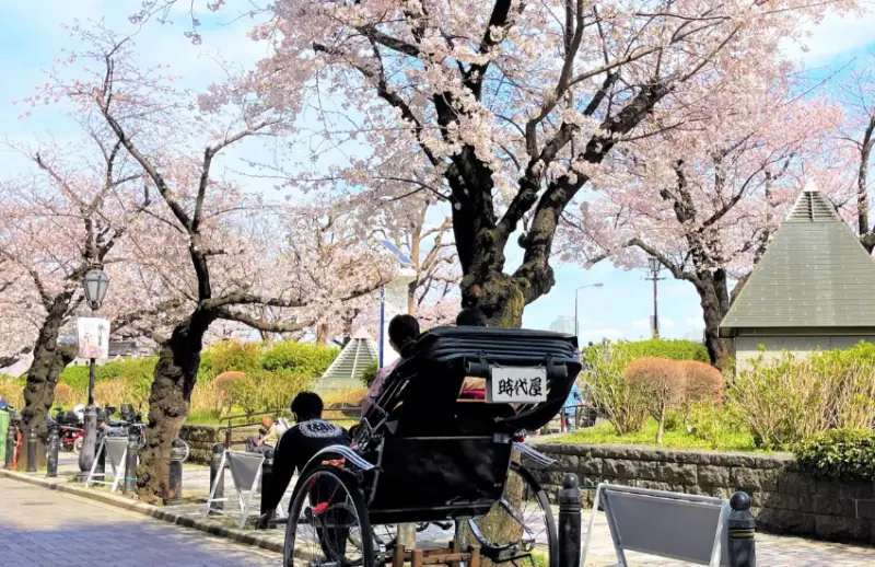墨田區共種植了約300棵櫻花樹。隅田川兩岸也有延續約1公里的櫻花道,最重要的是,如果你想要賞夜櫻,選隅田公園就對了。在櫻花季的時候也有人力車可以搭乘,如果預算、時間足夠的話,推薦可以搭乘人力車賞櫻,體驗明治、大正時代的日本風情喔!