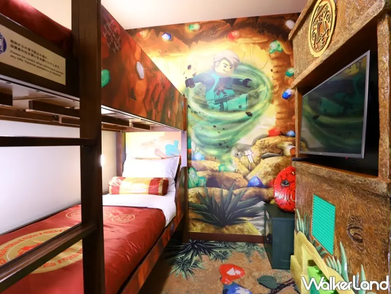 ▲「樂高®旋風忍者®」主題房等,每間房間內皆配備兒童專屬雙層床、專屬電視、藏有寶物的箱子 / 日本樂高樂園®度假村提供、WalkerLand窩客島整理