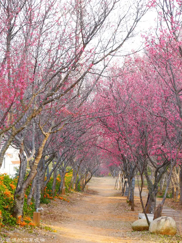 苗栗知名的「銅鑼炮仗花步道」不只炮仗花必拍,步道附近也種有不少櫻花樹林,櫻花季盛開時,兩排茂密的櫻花樹甚至形成櫻花隧道般的唯美景色,橘紅色炮仗花步道、粉色櫻花隧道來這一次免費拍個夠;開車到「石水坊高冷草莓」、「馬都安部落」附近,沿路能看見櫻花、李花,在觀景台附近甚至也能看到梅花,粉白色花海全要拍。![]()