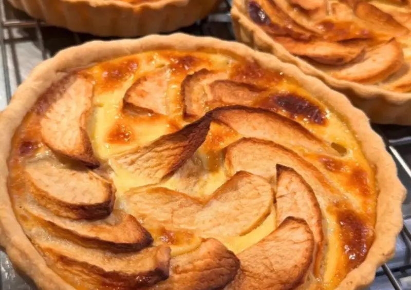 「布列塔尼法國烘焙坊」的甜點種類豐富,招牌蘋果派一上架便經常秒殺。這款蘋果派以手工酥脆塔皮為基底,鋪上滿滿的新鮮蘋果切片,再撒上杏仁片與焦糖醬,口感層次豐富且甜而不膩,難怪成為店內熱銷款。此外,「檸檬塔」、「巧克力塔」與「培根鹹派」也是許多顧客的心頭好。
