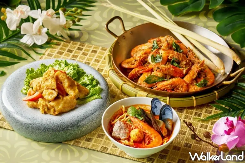 同時,本次「星馬奇遇」活動將持續至4月15日,館內主廚團隊精選數十道南洋經典美食,完美還原星馬風味。例如「新加坡咖喱魚」,相較於印度咖哩更帶有酸香層次,羅旺子醬與椰奶的結合,使整體風味辛香而不嗆辣,十分適合喜愛濃郁口感的饕客。另一道「金不換沙嗲蛋黃蝦」則選用鹹香鴨蛋黃與濃郁沙嗲醬結合,裹在鮮蝦上酥炸,搭配蒜香與九層塔,香氣四溢,令人垂涎。喜歡辛香味的食客,更不能錯過「星洲胡椒螃蟹」,特別選用黑白胡椒現磨入菜,香氣濃郁,層次感豐富。