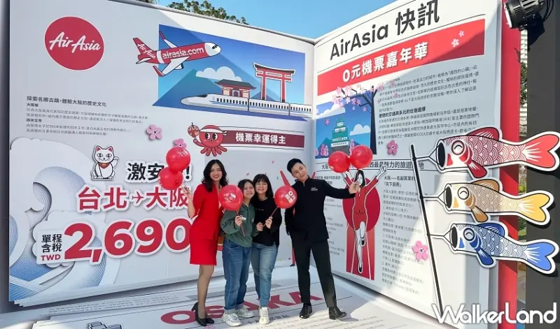 為了讓更多台灣旅客親身感受AirAsia的活力,此次促銷將透過「AirAsia 0元機票嘉年華」實體活動與粉絲見面,參與者不僅能享受多項趣味體驗,還能參加闖關遊戲,贏得台北直飛大阪、沖繩、曼谷、清邁、吉隆坡、馬尼拉、沙巴等地的來回機票,共計14張機票等你來搶。