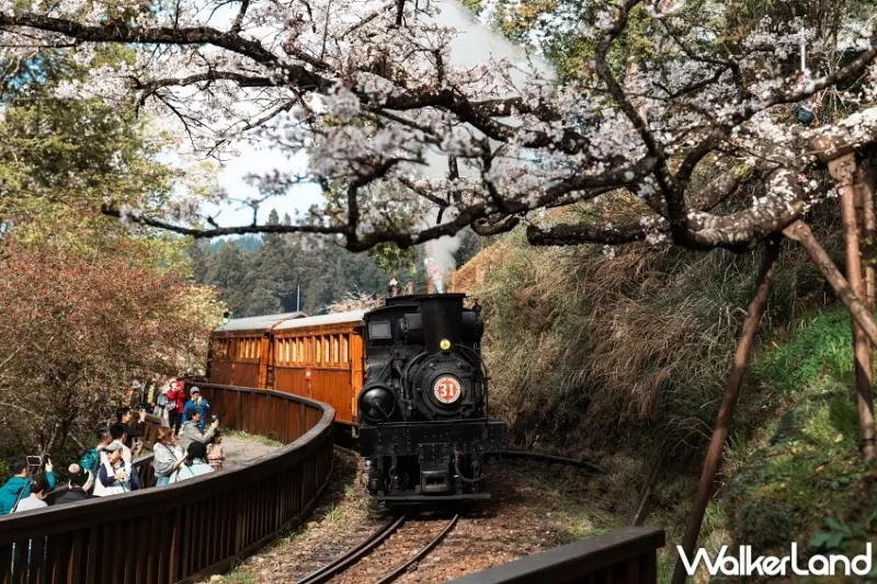 ▲阿里山櫻花季即將迎來最夢幻的旅程。林業及自然保育署阿里山林業鐵路及文化資產管理處推出年度限定的「綻放舞櫻」主題列車 / 林鐵及文資處蔡文淇拍攝提供、WalkerLand窩客島整理