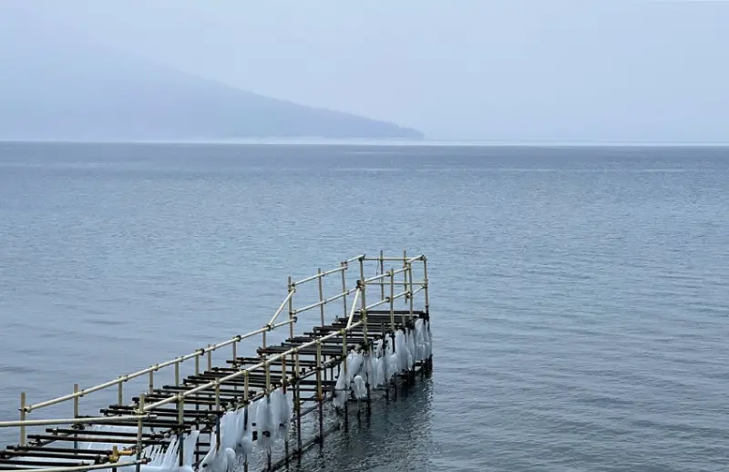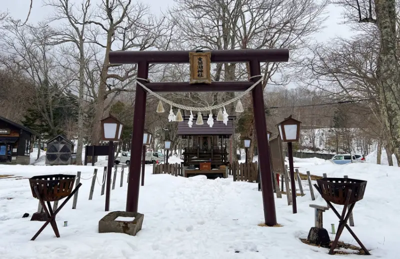 支笏湖神社是一個隱藏湖畔森林之間的神秘場所,供奉著山神和水神,儘管不大,卻是支笏湖地區的守護神;神社參道覆滿白雪,石燈籠與木製拜殿在積雪中顯得莊嚴靜謐,彷彿一座遺世獨立的冰雪神殿,參拜過後,站在鳥居這側向湖景望去,雲霧繚繞的支笏湖景色更顯神秘,是一個感受自然能量的絕佳地點。![]()