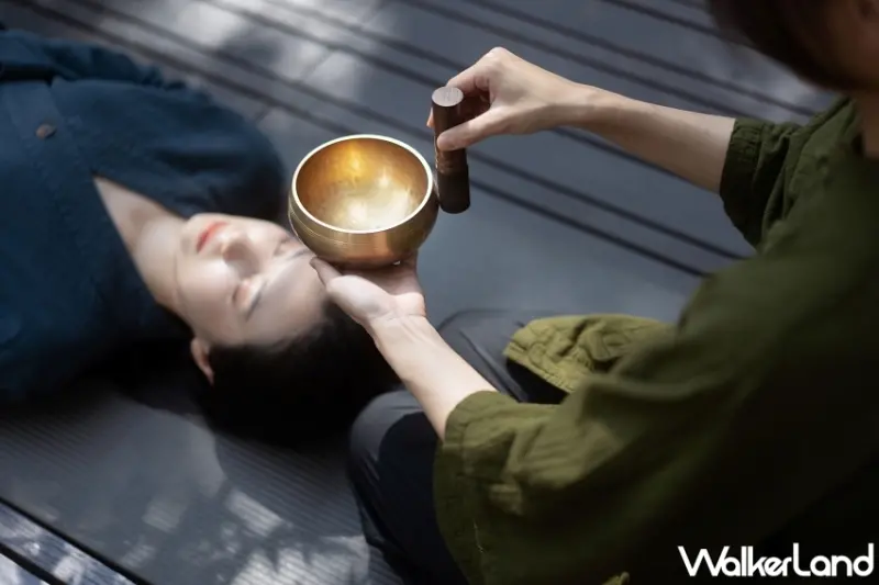 一早的晨間體驗安排在靜謐的水之庭園,先來一場「淨氣生陽調息」,透過深呼吸和伸展運動,把身體完全喚醒。活動結束後,旅客可以躺在松樹環繞的森林裡,閉上眼睛聆聽大自然的聲音,配合頌缽的音律進行冥想,感受春天的氣息在身體裡流動。