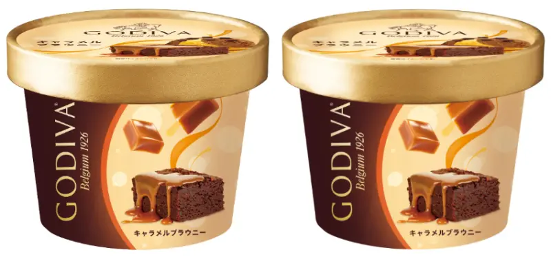 GODIVA新作「焦糖布朗尼」杯裝冰淇淋,使用Guerande鹽製作焦糖冰淇淋,搭配巧克力冰淇淋與餅乾。現在已經在超市、便利商店販售,售價356日圓(含稅)。![]()