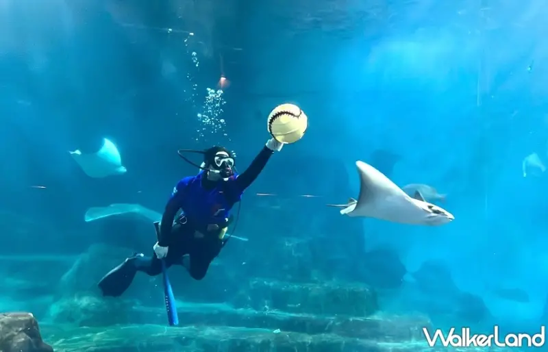 ▲花蓮遠雄海洋公園推出全新「水下棒球賽」,將棒球運動與海洋世界結合,為遊客帶來前所未有的娛樂體驗 / 遠雄海洋公園提供、WalkerLand窩客島整理